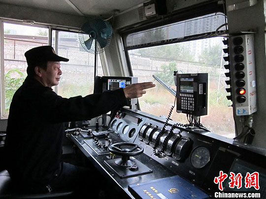 10月13日,担当1720次旅客列车牵引任务的兰州铁路局兰州西机务段火车司机尤光严格执行行车作业标准。樊宁礼 摄