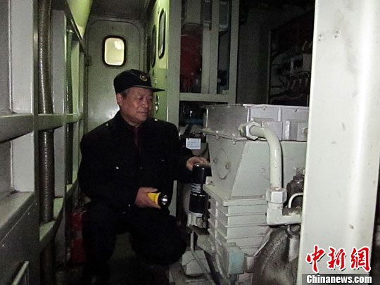 10月13日,担当7502次旅客列车牵引任务的兰州铁路局兰州西机务段火车司机孙永峰在对火车头内部机械部件进行巡检。樊宁礼 摄