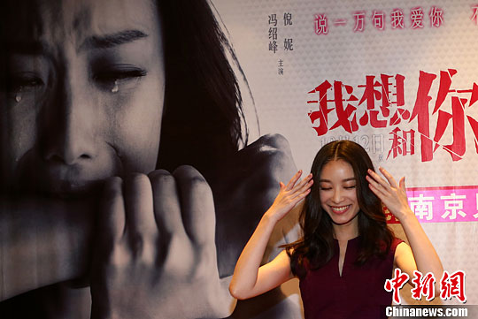 10月14日,导演李蔚然带着谋女郎倪妮现身南京,为电影《我想和你好好的》作宣传,一身紫色连衣短裙的倪妮相较此前进行宣传《金陵十三钗》身着的白色毛衣,显得更加成熟自信。中新社发 泱波 摄