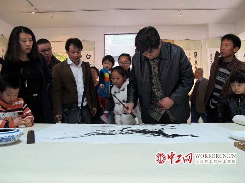 10月26日,北京同泽艺术馆开业盛典在北京宋庄举办。同时,由中国书画艺术产业联盟、北京同泽景园集团、中国名家书画研究院共同主办的 “中国梦·名家情书画联展”在北京同泽艺术馆展出。展出了袁熙坤、冯远、景学勤等百名书画名家的作品。  中工网记者 邱晔 摄
