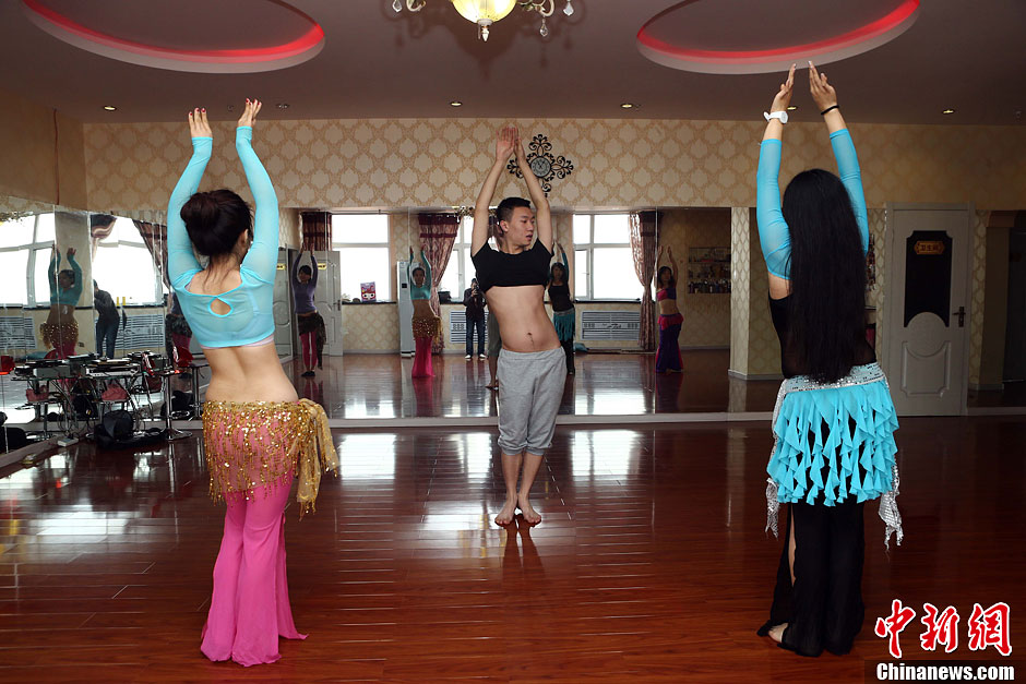11月15日,在山西太原一家肚皮舞女子健身主题会,女学员们跟随着一位“90后”的男教练有节奏地翩翩起舞,年轻的男教练舞姿优雅、性感、妩媚,表情中洋溢着快乐与自信。中新社发 张云 摄