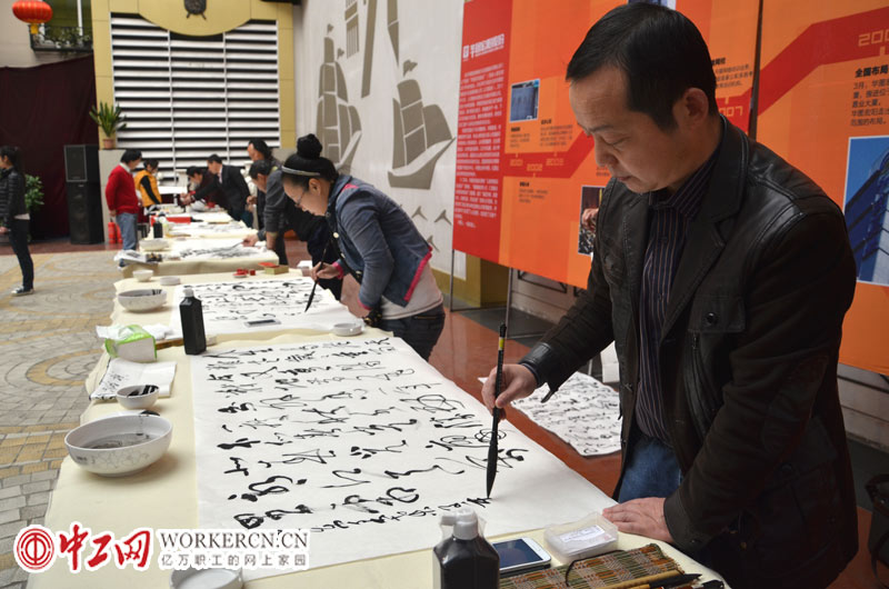 11月16日,书法名家在笔会上挥毫创作。当日,由中国名家书画研究院、中国书画艺术产业联盟、中国华夏画院、华图教育等多家单位共同举办的纪念毛泽东诞辰120周年名家书画笔会在北京优龙会议中心举行。