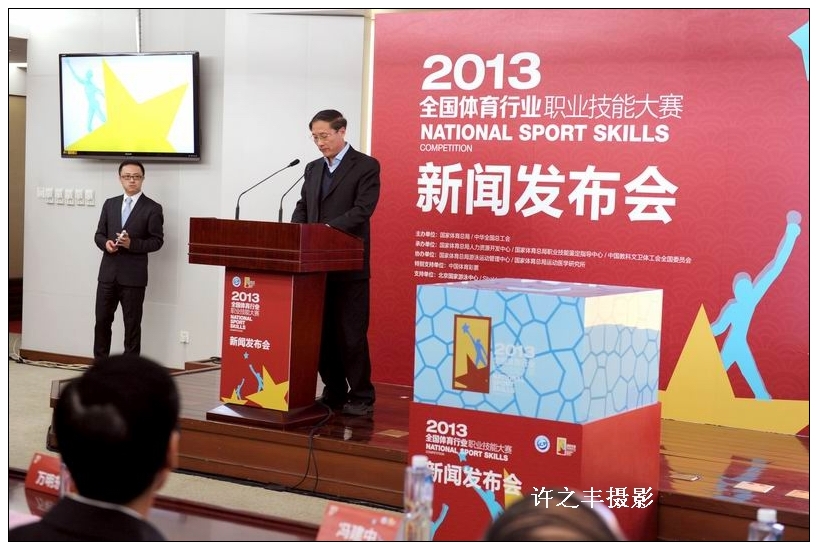图为在国家体育总局召开的新闻发布会现场的启动仪式。工人日报-中工网记者许之丰摄影报道