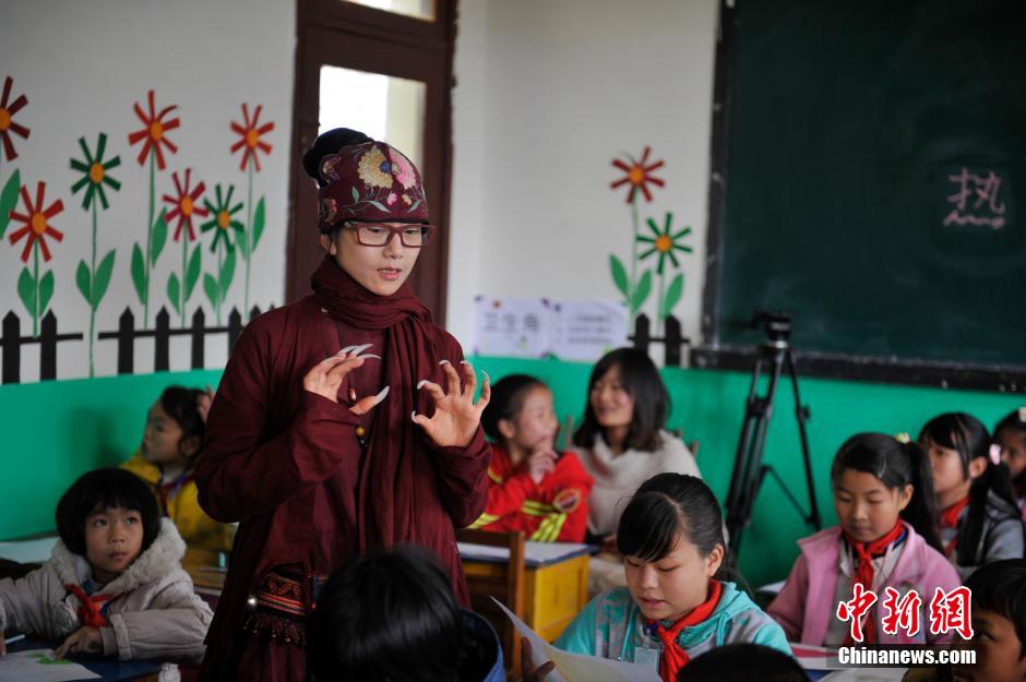 12月5日,杨丽萍与小朋友在课堂上交流。当日,舞蹈家杨丽萍现身昆明民办慈善公益学校德馨学校,邀请学生们免费观看杨丽萍国际舞蹈季首场表演《4D魔幻舞蹈秀》。受邀的学生大多为下岗工人和外来务工者子女及孤儿。中新社发 刘冉阳 摄