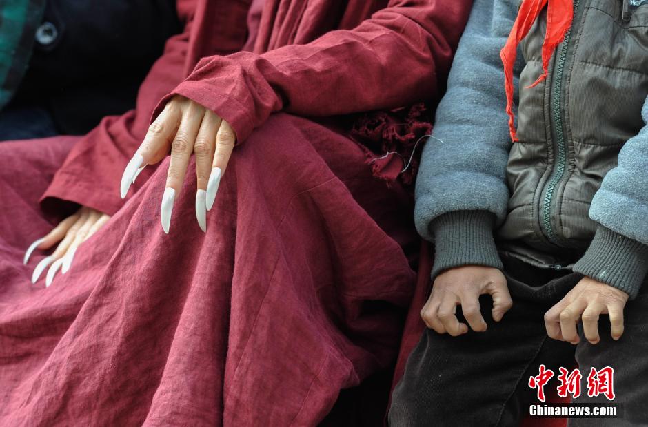 12月5日,与杨丽萍合影时,这些天真的孩子很紧张。当日,舞蹈家杨丽萍现身昆明民办慈善公益学校德馨学校,邀请学生们免费观看杨丽萍国际舞蹈季首场表演《4D魔幻舞蹈秀》。受邀的学生大多为下岗工人和外来务工者子女及孤儿。中新社发 刘冉阳 摄