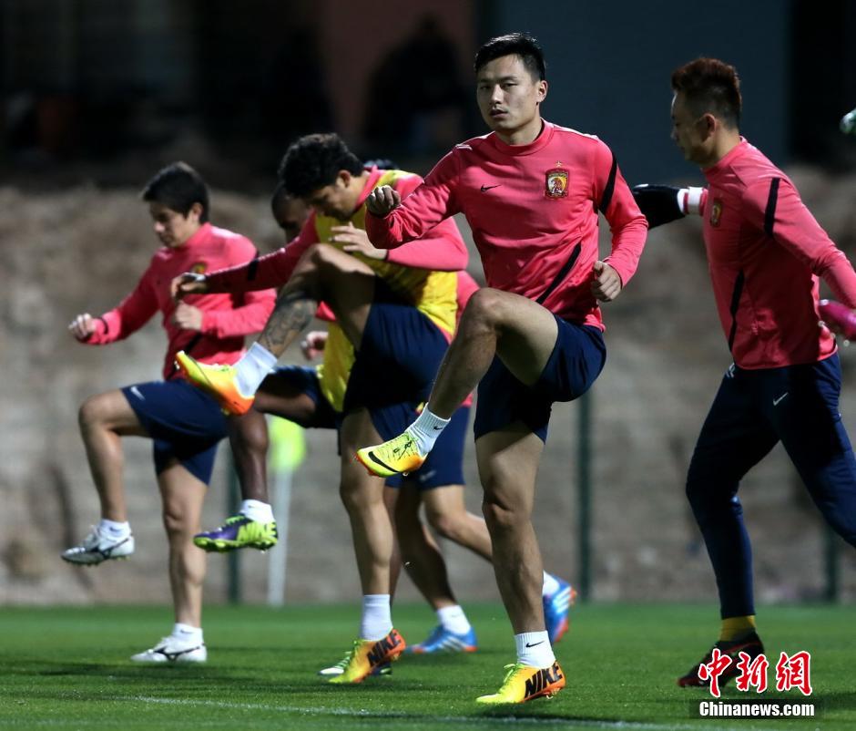 2013年12月10日,广州恒大队出征世俱杯,抵达酒店后马上进行首堂训练课。图片来源:Osports全体育图片社