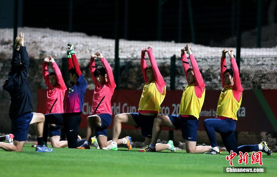2013年12月10日,广州恒大队出征世俱杯,抵达酒店后马上进行首堂训练课。图片来源:Osports全体育图片社