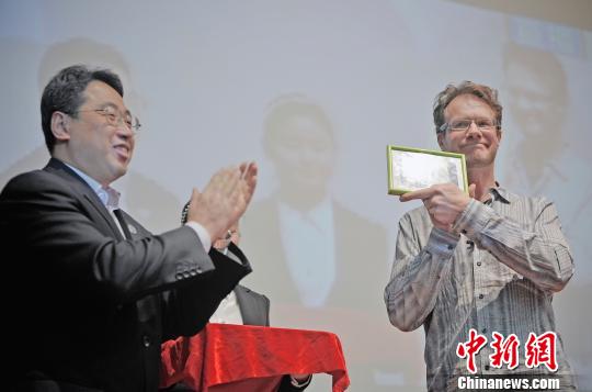 图为大山接受天津大学赠送的礼物。 佟郁 摄