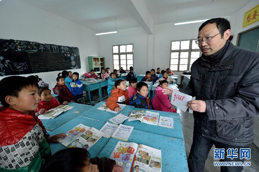 12月10日,在湖北省保康县寺坪镇李家村小学,阮班琼在给学生们上英语课。在湖北省襄阳市保康县寺坪镇的崇山峻岭中分布着5所农村小学。