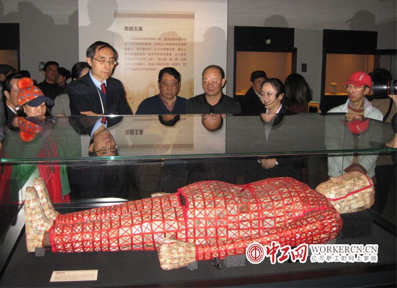 图为观众在欣赏展出的南越国时期“丝缕玉衣”。(中工网记者马杨灵 摄)