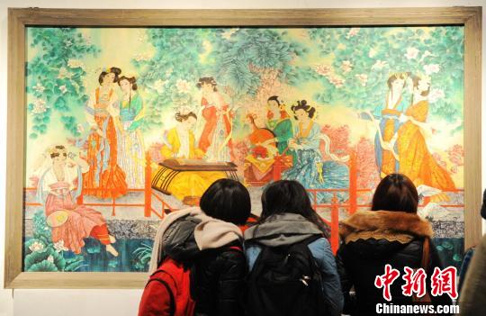 12月25日,市民在观赏陈文灿漆画作品《新韵》。张斌 摄