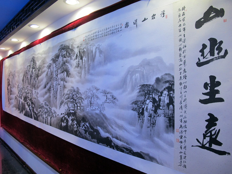 12月28日,山幽尘远——宋斌艺术中国展在北京开幕。此次展览展出宋斌精心创造《雾凇山水》、《大树》、《中国红》、《中国蓝》、《五花山》、《咏鹅》、《小品》等系列经典作品68幅,作品《山幽尘远》,长6米,宽1.2米,以恢弘的气势描绘了北方的雾松山水。活动以宋斌艺术中国展为重心结合了歌舞乐器表演,让多种艺术形式展示在观众人面前。 中工网记者 邱晔 摄