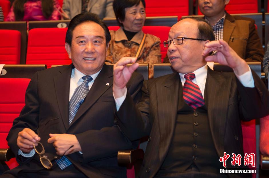 12月29日,“2013两岸诗会桂冠诗人颁奖礼暨《乡愁》主题交响乐诗会”在海南省海口市举行,中国国民党副主席蒋孝严(右)与海峡两岸关系协会顾问陈云林出席并亲切交谈。中新社发 骆云飞 摄