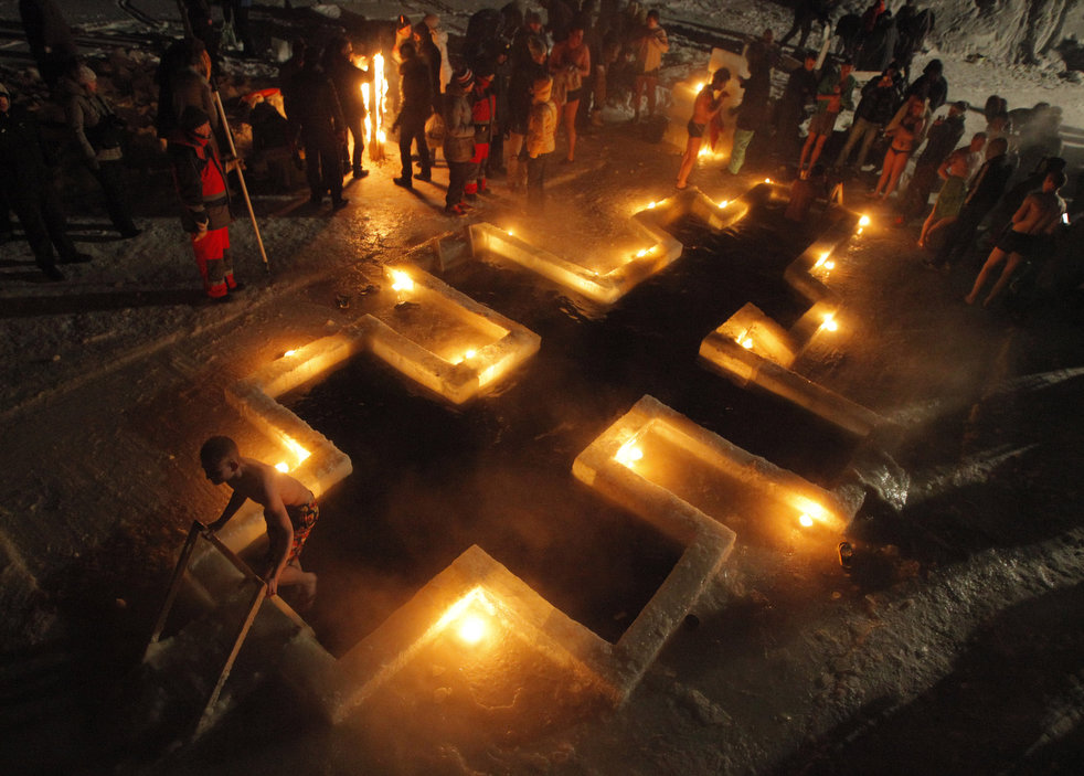 近日,为庆祝“主显节”,数千名来自俄罗斯以及部分苏联共和党时期国家的东正教基督徒当天不畏严寒,跳入冰冷的河水和池塘中。