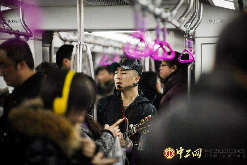 现在的胡忠军除了在地铁里唱歌,平时在家自学音乐创作,自己作词作曲,并且有了自己的作品,他的梦想是出一张自己的专辑。(中工网记者 韩靖摄)