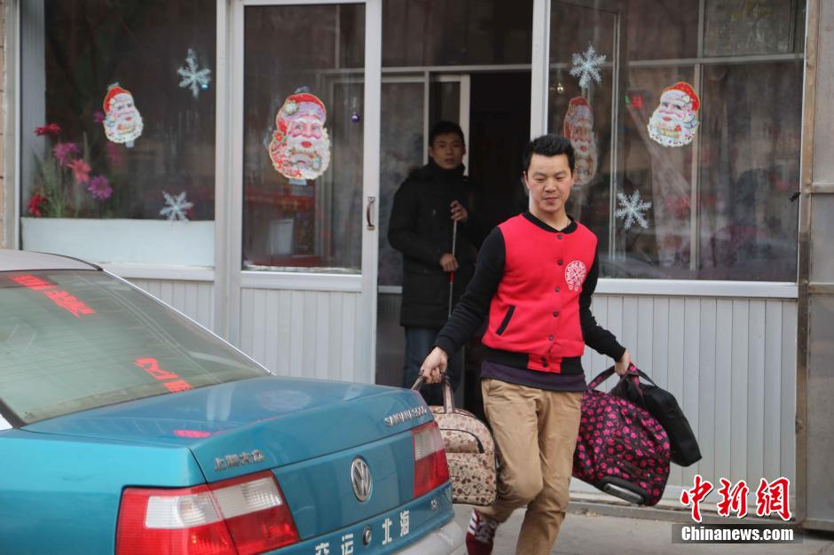 1月25日,按摩店老板小吴帮忙将两兄弟行李放上出租车。杨晓卫 摄