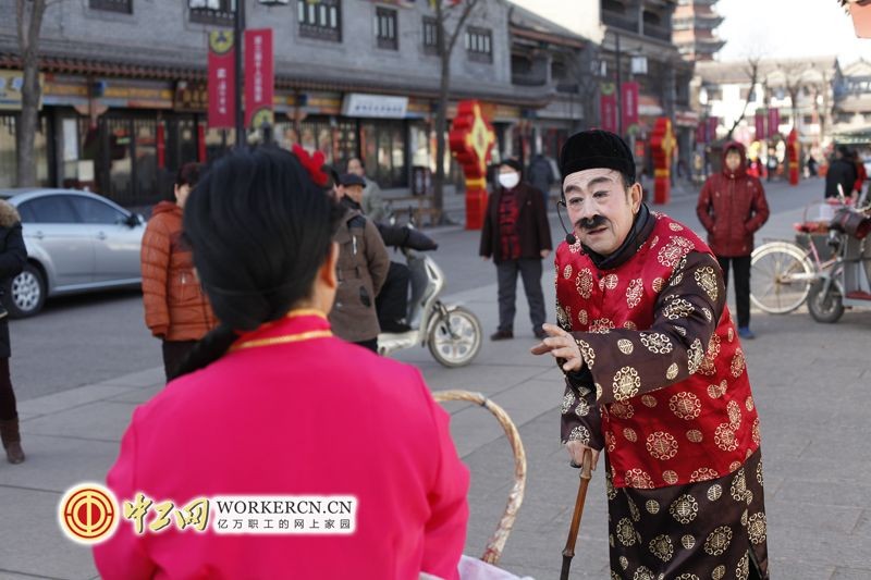 图为演员走到台下为群众表演,全民互动。中工网记者 韩靖 摄
