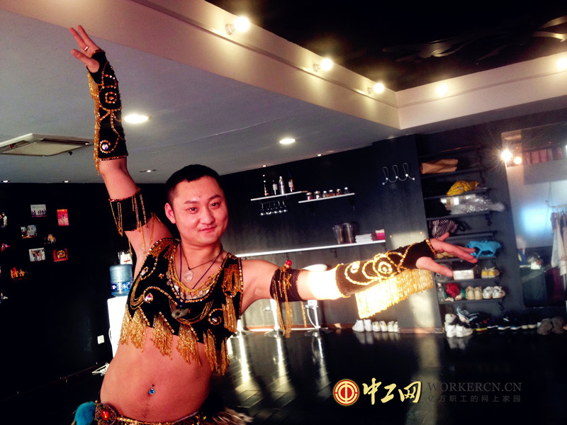 他叫闫晨滨,是一名肚皮舞教练,1985年生人,内蒙古锡林浩特人,来北京已经6年了。闫晨滨告诉记者,他从小他就特别向往北京,每次上坐火车经过北京,都有种莫名踏实感,这让他下定决心以后要来到北京生活。中工网记者 葛姗 摄