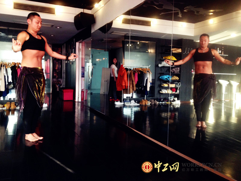 租住的地下室里没有镜子,闫晨滨为了练舞,每天都在自己小区的路灯下,对着墙壁上影子练舞。中工网记者 葛姗 摄