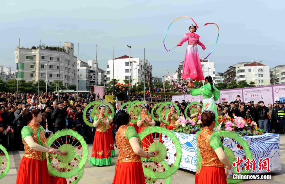 2月13日,福州民众组织各种民俗踩街活动喜迎元宵佳节。中新社发 王东明 摄