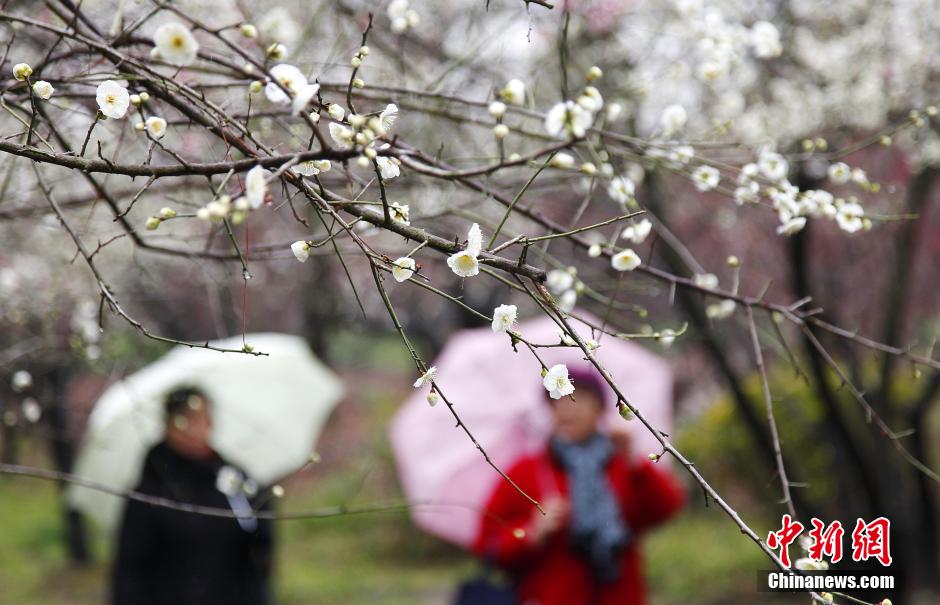 2月19日,上海的降水接近尾声,春意渐浓,近日开幕的上海世纪公园梅花腊梅展的3000株蜡梅迎风怒放,香气袭人,市民纷纷来此赏梅。其中尤以50株川西老腊梅花朵开得繁盛,这50株老腊梅树引进自四川大巴山地区,花朵较一般腊梅更大,圆润饱满。中新社发 袁婧 摄