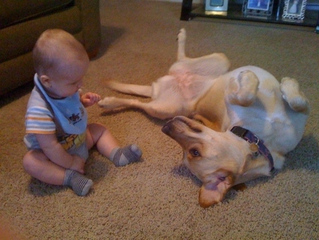 家有宠物是一件十分幸福的事情,如果训练有素,它们不仅会送牛奶、叼鞋子、开门,甚至还可以帮你照顾孩子。萌宠狗狗和天然呆儿童在一起,就是家中最幸福的画面。在这个独生子女很多的社会里,能有一个童年玩伴是一件十分幸运的事情呢。