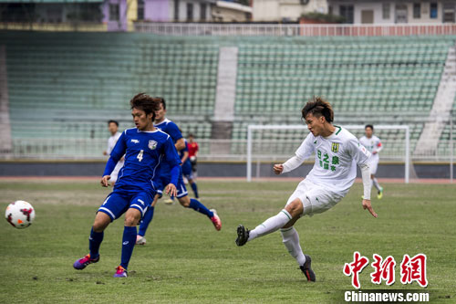 3月2日,首届“海峡杯”两岸足球赛在广东省人民体育场开哨,以“日之泉”俱乐部为基础组建广东代表队,最终以4-0击败了台北光华队。“海峡杯”两岸足球赛是广东省首场在两岸专业足球队之间举行的比赛,填补了粤台体育交流领域尚无专业足球赛的空白。中新社发 龙宇阳 摄