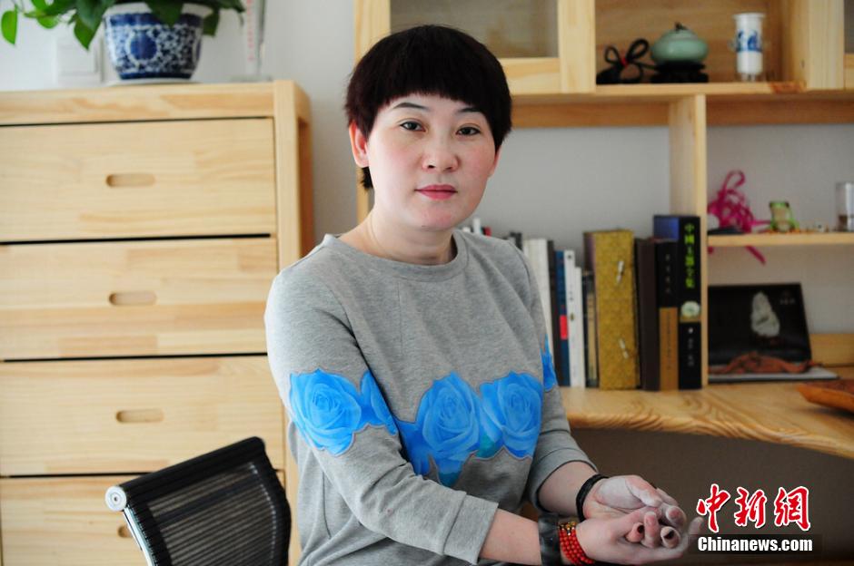 3月7日拍摄于马秀芳在乌鲁木齐市的玉雕工作室。40岁的马秀芳进入玉雕行业已有20年,原先学雕塑专业的她,进入玉雕行业仅是为了生活。在学习玉雕的过程中,马秀芳渐渐被和田玉的美和文化内涵所吸引,并提出了自己坚持的创作原则:以最简洁的图案来最大限度的展现和田玉的自然美。如今,已是国家级玉雕大师的马秀芳依然保持着学徒时上午10点开工,下午7点收工的习惯。对于玉雕行业绝大多数都是男性的现状,马秀芳表示:“玉雕是一种无关性别的浪漫艺术。”已是两个孩子妈妈的马秀芳,平时除了玉雕,她喜欢打扮自己,还喜欢为两个孩子做饭。马新龙 摄