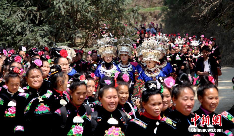 招龙节是贵州省黔东南苗族侗族自治州地区苗族的重要节日,苗族世代相传的古歌《枫木歌》中说,最早这个世界上有着12头水龙,12条旱龙,12条水龙是由水牛来主管,而旱龙由人来主管。苗家人招龙旨在祈求五谷丰登。3月14日至29日是贵州雷山县龙塘苗寨“招龙节”,“姑妈回娘家”大聚会是其中最重要的活动之一。图为3月19日,300余名外嫁女挑着礼物回娘家过节。中新社发 李雪 摄