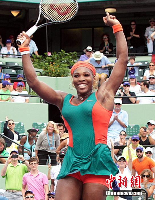 3月30日,总奖金额为5,185,625美元的皇冠赛事索尼赛结束最后的冠军争夺战,对阵双方是世界排名前两位的小威和李娜。在首盘错失盘点和5-2领先的巨大优势后,李娜连丢6局,最后以5-7/1-6告负,遗憾地未能拿下生涯首个皇冠赛冠军。此役过后,李娜对阵小威十连败。图为小威在比赛中。