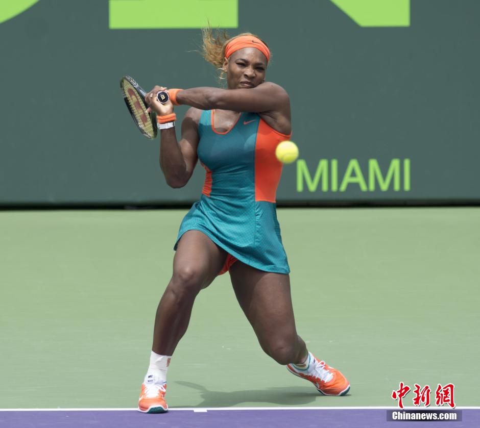 3月30日,总奖金额为5,185,625美元的皇冠赛事索尼赛结束最后的冠军争夺战,对阵双方是世界排名前两位的小威和李娜。在首盘错失盘点和5-2领先的巨大优势后,李娜连丢6局,最后以5-7/1-6告负,遗憾地未能拿下生涯首个皇冠赛冠军。此役过后,李娜对阵小威十连败。图为小威在比赛中。