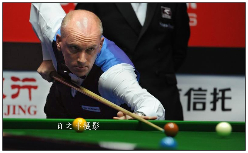 2014年4月2日,2014世界斯诺克中国公开赛第二轮的比赛,艾伯顿与特鲁姆普的比赛、肖国栋与沃顿、罗伯逊与威廉姆斯、迈克尔-怀特与希金斯、丁俊晖与塔猜亚、邦德与塞尔比在比赛中。工人日报-中工网记者许之丰摄影报道