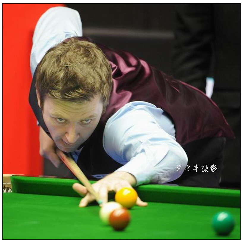 2014年4月2日,2014世界斯诺克中国公开赛第二轮的比赛,艾伯顿与特鲁姆普的比赛、肖国栋与沃顿、罗伯逊与威廉姆斯、迈克尔-怀特与希金斯、丁俊晖与塔猜亚、邦德与塞尔比在比赛中。工人日报-中工网记者许之丰摄影报道