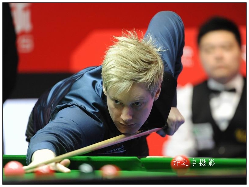 2014年4月6日晚,2014年斯诺克中国公开赛在北京大学生体育馆全部结束。决赛第一阶段丁俊晖全面占优,轰1杆破百7比2遥遥领先世界第一罗伯逊。第二阶段丁俊晖再接再厉,再添1杆破百,总比分10比5击败卫冕冠军罗伯逊,时隔9年再次在北京夺冠,收获8万5千英镑冠军奖。这也是丁俊晖单赛季第五次在大型排名赛称雄,追平亨德利的最高纪录,个人排名赛冠军奖杯由此增加到11个。工人日报-中工网记者许之丰摄影报道