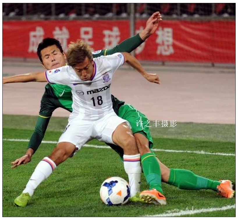 2014年4月16日晚,亚冠联赛小组赛第5轮比赛,北京国安队主场迎来日本J联赛劲旅广岛三箭。比赛进行到第56分钟,乌塔卡门前扫射被挡出,邵佳一补射为国安队率先破门,第62分钟,邵佳一禁区内脚后跟做球,格隆打入一球,国安队2比0领先。可惜广岛三箭在三分钟内先后攻入两球将比分扳平。最终北京国安队主场2比2战平广岛三箭。工人日报-中工网记者许之丰摄影报道