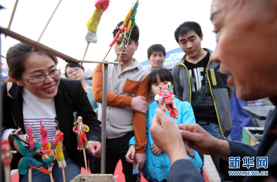4月21日,董金龙在街头现捏现卖他的面塑作品。新华社发(鲍东升 摄)