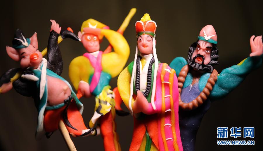 这是4月21日拍摄的董金龙塑造的《西游记》面塑人物。新华社发(鲍东升 摄)