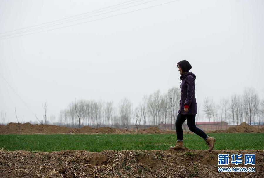 3月28日,石嫣行走在“分享收获”北京通州基地的田地里。新华社记者 罗晓光摄