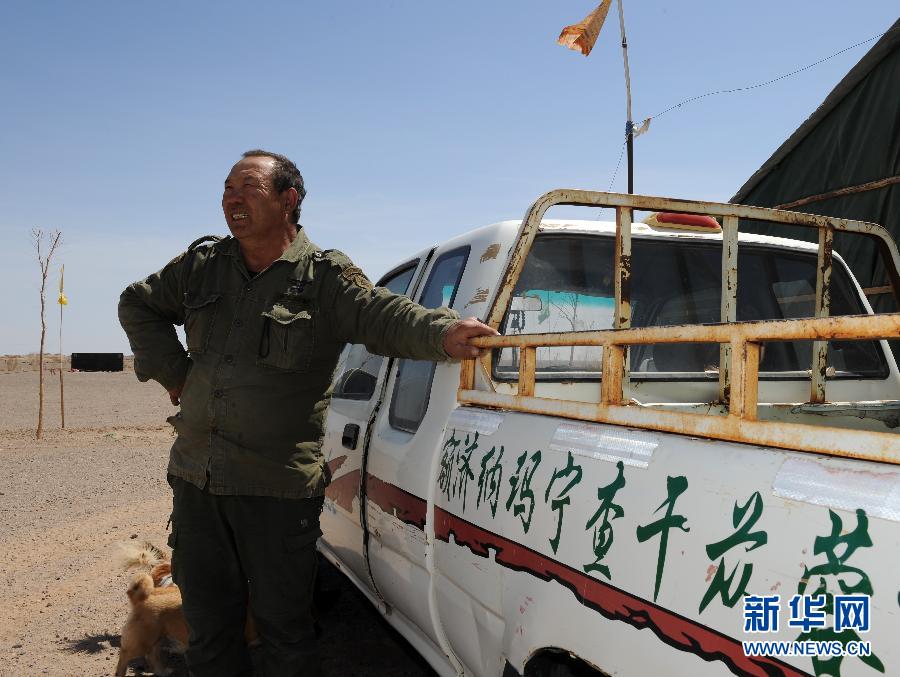 居住在内蒙古自治区阿拉善盟额济纳旗巴丹吉林沙区的嘎布亚图虽已年近六旬,却每天在承包的10000多亩沙地中忙碌,他期待着在这片“黄沙海洋”中实现自己的绿色梦想。上个世纪九十年代,嘎布亚图从部队转业到地方后,一直在额济纳旗植树造林、治沙固沙。从2004年开始,他在巴丹吉林沙漠一处名叫玛宁查干的荒漠戈壁扎下蒙古包,打井拉电、防沙固沙,种植胡杨、梭梭,林木成活率达80%以上。在当地政府有关部门和社会各界多方的支持下,他尝试沙生植物苁蓉的种植,在防沙治沙、改善环境的同时,开发沙漠产业,也可以增加自己的收入。新华社记者张领摄
