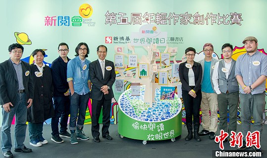 香港第五届“年轻作家创作比赛”24日在香港启动。比赛将邀请包括香港导演黄修平(左四)及澳门作曲填词人李峻一(右二)在内的10位评审为入围者进行一对一的创作指导。中新社发 卢哲 摄