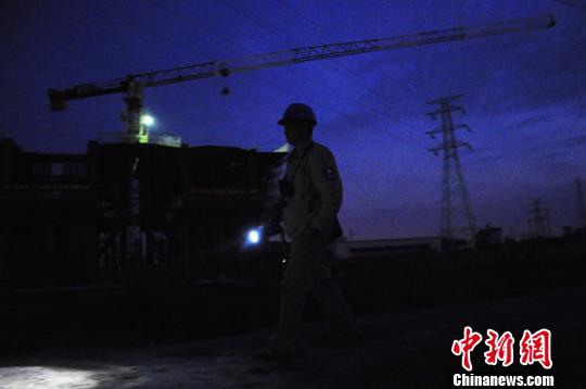 睡觉前,范志红仍不放心工地安危,还用电筒巡视一遍。王小兵 摄