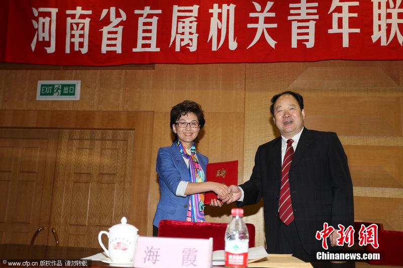 2014年05月04日讯,河南省郑州市,4日,河南省直属机关青年联合会第二届委员会第一次全体会议在省人民会堂召开,省直176名各族各界青年代表集聚一堂,共商省直机关青年工作大计。大会聘请河南省青联副主席海霞为本届省直青联名誉主席。