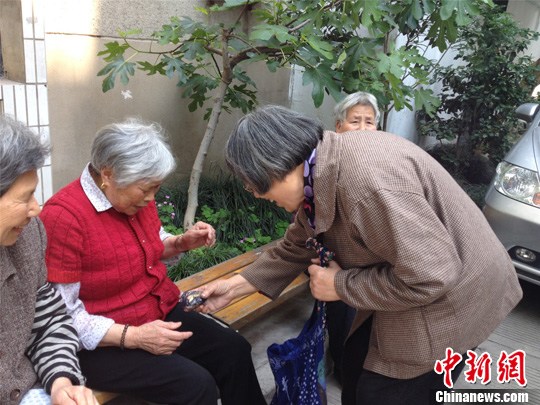 5月5日,浙江省杭州81岁老人罗祖煦将她自制的乌米饭团送给在小区楼下聊天的老人。据悉,当天为立夏日,老底子杭州人有吃乌米饭的习俗。老人自制乌米饭团送路人希望更多人了解这个习俗。中新社发 李梦清 摄