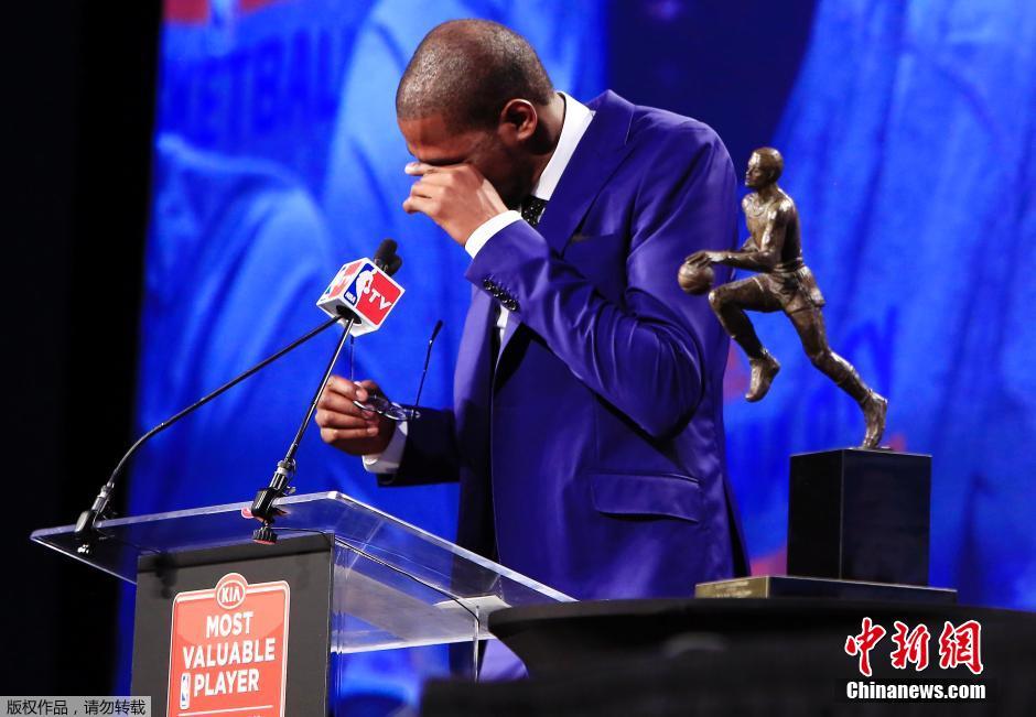 杜兰特高票当NBA选常规赛MVP 获颁奖杯激动落泪