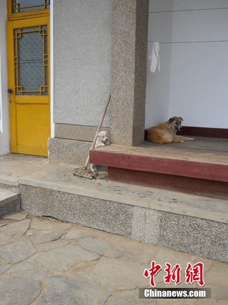 在朝鲜咸镜北道七宝山脚下的宝村里民俗村,是朝鲜对外国游客开放程度最高的村庄。5月上旬,记者跟随从吉林省图们市出发的一个旅行团来到这里。村庄占地7公顷,有20户朝鲜居民。村庄离大海非常近,村民大多从事渔业。图为民俗村内,几乎家家都养着狗。陈博宜 摄