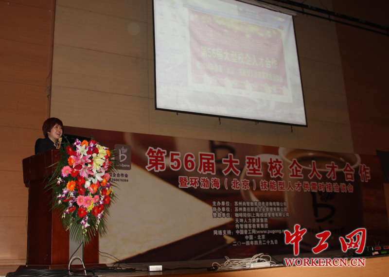 为给企业提供长期而有序地开发职业院校人才,满足企业短期的用工需求以及中长期人才储备、也为了促进各类职业院校有计划向各类企业输送对口人才,提高学校就业质量和扩大就业渠道,近日,由苏州尚智教育主办的“第56届大型校企人才合作暨2014环渤海(北京)技能型人才供需对接洽谈会在京举行。来自北京等周边地区70余家企业和华北、西北、东北等地区70余所职业院校相关负责人参加。(中工网记者杨灵 摄)