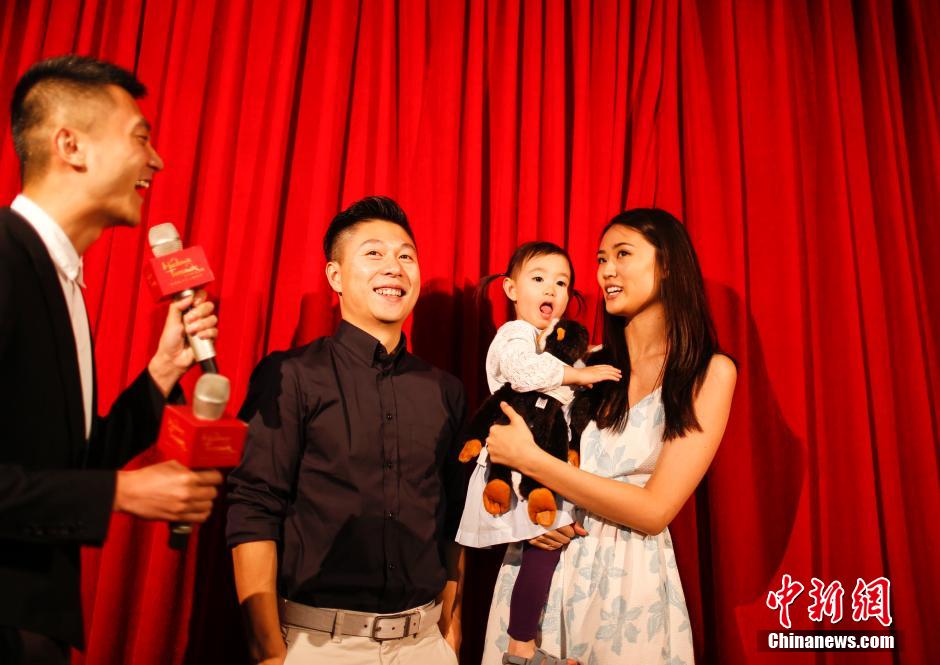 6月10日,“体操王子”李小鹏携爱女奥莉及爱妻在北京杜莎夫人蜡像馆揭幕蜡像。近期参与的浙江卫视的亲子类节目《爸爸回来了》中,头顶着16个冠军头衔的体操王子首次带着自己的爱女出镜,成功跨界娱乐圈,凭借其颇高的人气和严父形象,获封“最靠谱奶爸”,女儿更是被冠以“国民萌娃”称号。中新社发 杨阳 摄