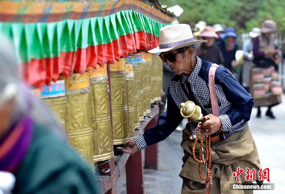 6月13日即藏历四月十五日,西藏“萨嘎达瓦”达到最高峰。大批信教民众扶老携幼沿拉萨市内三条主要转经路转经,大昭寺及八廓街人潮涌动。相传藏历四月是佛祖释迦牟尼的诞生、成佛、圆寂的日子,为了纪念该月,便有了“萨嘎达瓦”。每年这个时候,信众会以各种方式纪念佛祖释迦牟尼,并发放布施,周济穷人,积德行善,进行斋戒。李林 摄