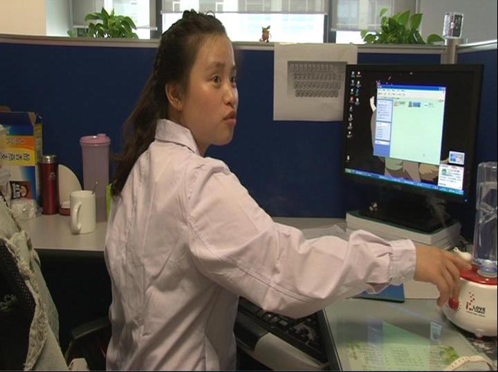 在一家环境研究院工作的Queen从四川来到北京,现从事环保工程师工作。她们为有关生产过程中的环境技术的改善发展方面做出了贡献。图为Queen在工位上准备写未完成的试验论文。