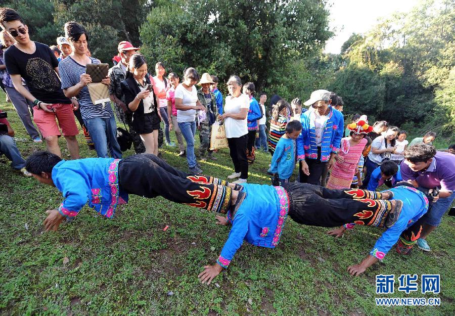 7月24日,云南省楚雄彝族自治州双柏县李方村的彝族群众在山上进行“蚂蚁爬坡”民俗活动。新华社记者 杨宗友 摄